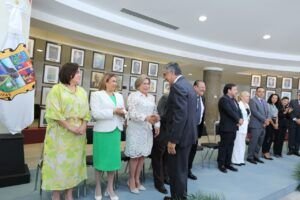 Mesa Directiva del Congreso; magistrado Hernán De la Garza Tamez, presidente del Supremo Tribunal de Justicia; Nora Imelda González Salazar, presidenta de la Academia Mexicana de la Educación en Tamaulipas; diputada Yuriria Iturbe Vázquez, presidenta de la Comisión de Educación, y Nora Hilda de los Reyes Vázquez, titular de la Oficina de Enlace Educativo con la SEP en el estado.