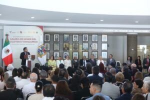 «Al develar las fotografías de las nuevas integrantes de esta Galería de Honor del Magisterio Tamaulipeco, honramos no solo su trayectoria profesional, sino también el compromiso y la vocación que han forjado miles de historias y transformado innumerables vidas a través de la docencia, del trabajo en el aula, del mejoramiento del espacio escolar, de la enseñanza cívica, de la extensión del espacio escolar hacia la comunidad», mencionó el gobernador.
