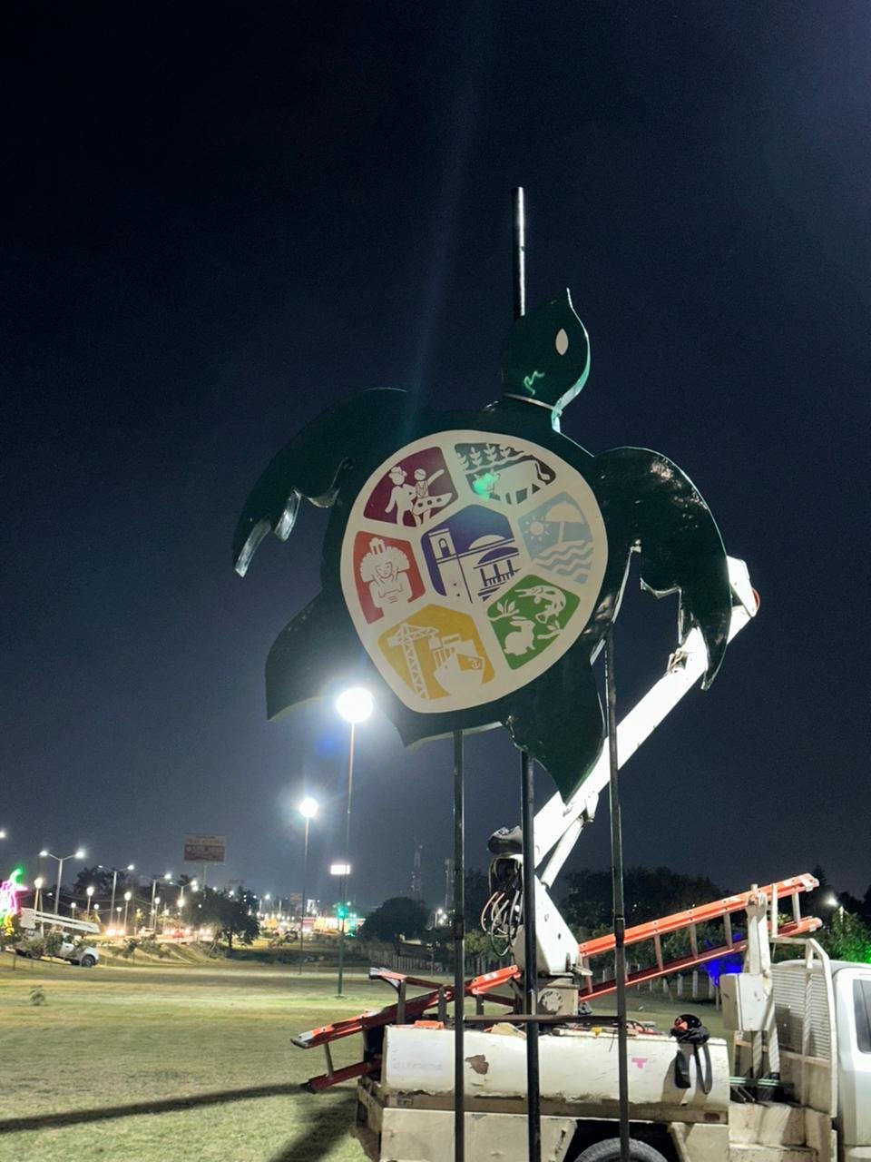 Como parte de las acciones permanentes para mejorar la imagen urbana y fortalecer la identidad del municipio, el Gobierno de Altamira, que preside el alcalde Dr. Armando Martínez Manríquez, continúa impulsando trabajos de embellecimiento en distintos puntos estratégicos de la ciudad. En esta ocasión, personal de la Dirección de Servicios Públicos llevó a cabo la instalación de la marca ciudad de la tortuga en la entrada del bulevar Allende, un símbolo que refuerza el sentido de pertenencia y proyecta con orgullo la identidad altamirense.