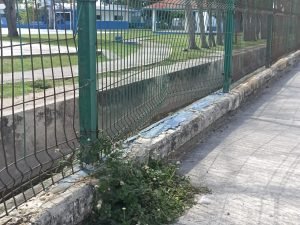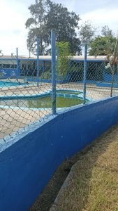 Falta de pintura, baños en malas condiciones, albercas sin usar y con agua sucia, basura, monte, cables expuestos, así como la mallacorla rota, son tan solo algunos de los daños y afectaciones que se pueden observar en la Unidad Deportiva en la zona norte del municipio.