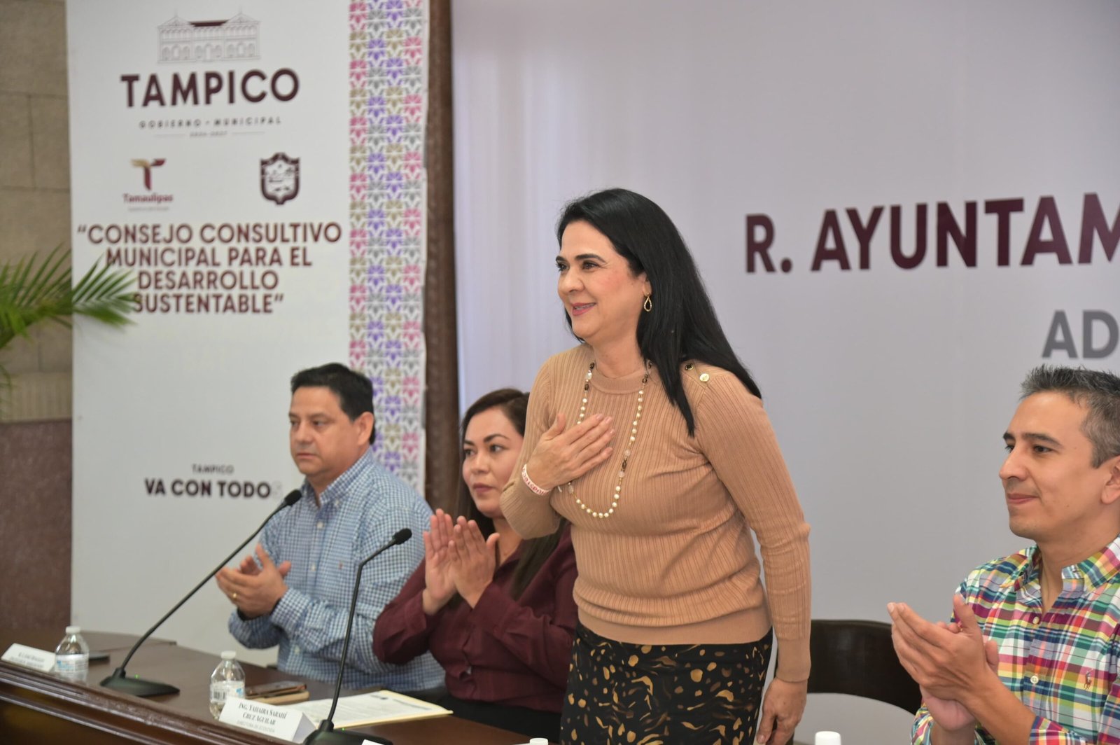 La Presidenta Municipal Mónica Villarreal Anaya, encabezó la ceremonia de integración del Consejo Consultivo para el Desarrollo Sustentable, efectuada, este día, en la Sala de Cabildo.Ahí, la primera autoridad, acompañada de la titular de Ecología, Yahaira Sarahí Cruz; así como del Secretario de Obras Públicas, José