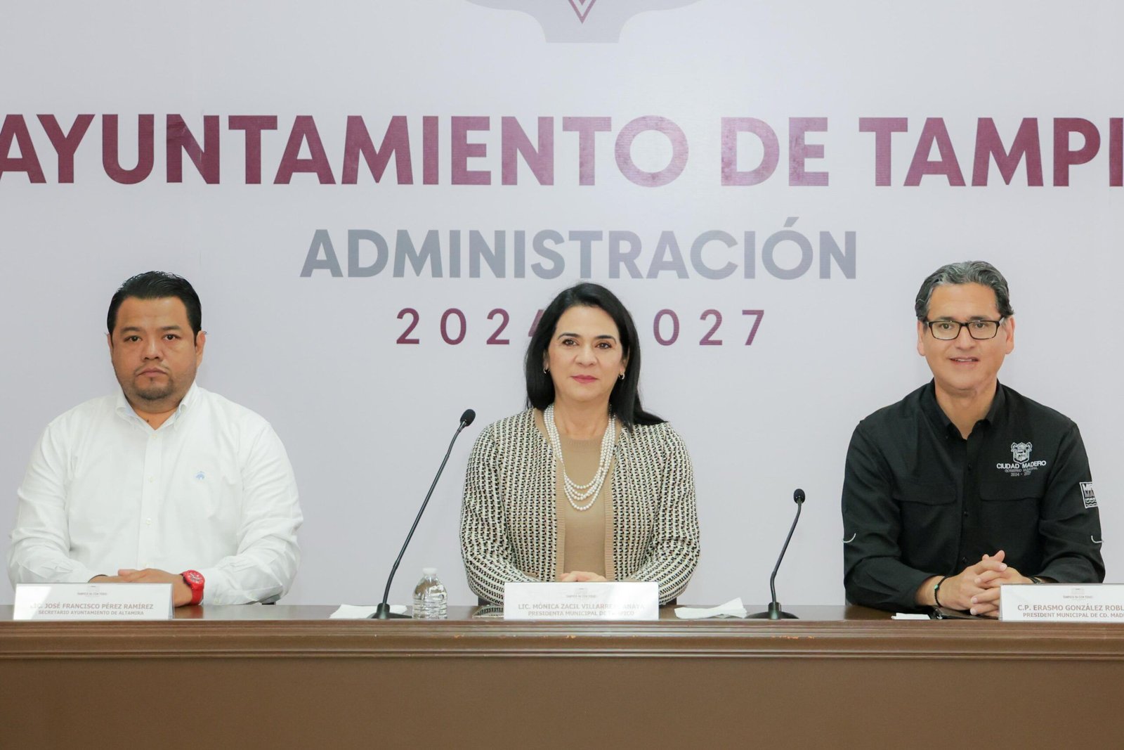 Ahí, la jefa de la comuna acompañada del alcalde de Ciudad Madero, Erasmo González Robledo y del secretario general del Ayuntamiento de Altamira, José Francisco Peréz Ramírez, aseguró que las acciones coordinadas de todas las instituciones y organismos ha hecho posible que se sigan disminuyendo los casos de violencia doméstica y de género en la zona conurbada, particularmente en Tampico.“Estas reuniones nos permiten evaluar las acciones realizadas, subrayar aquellas que han arrojado resultados favorables y atender las áreas de oportunidad prevalecientes; seguimos trabajando de manera coordinada con los municipios de Madero y Altamira; y con las autoridades de seguridad pública, para erradicar esos hechos delictivos que se presentan en la zona; nuestro compromiso es brindar la seguridad que las familias nos exigen, y seguimos trabajando en ello”, expresó.