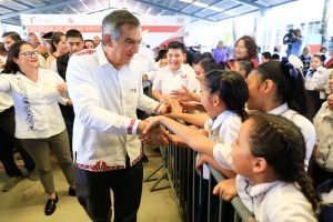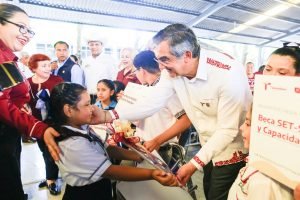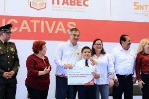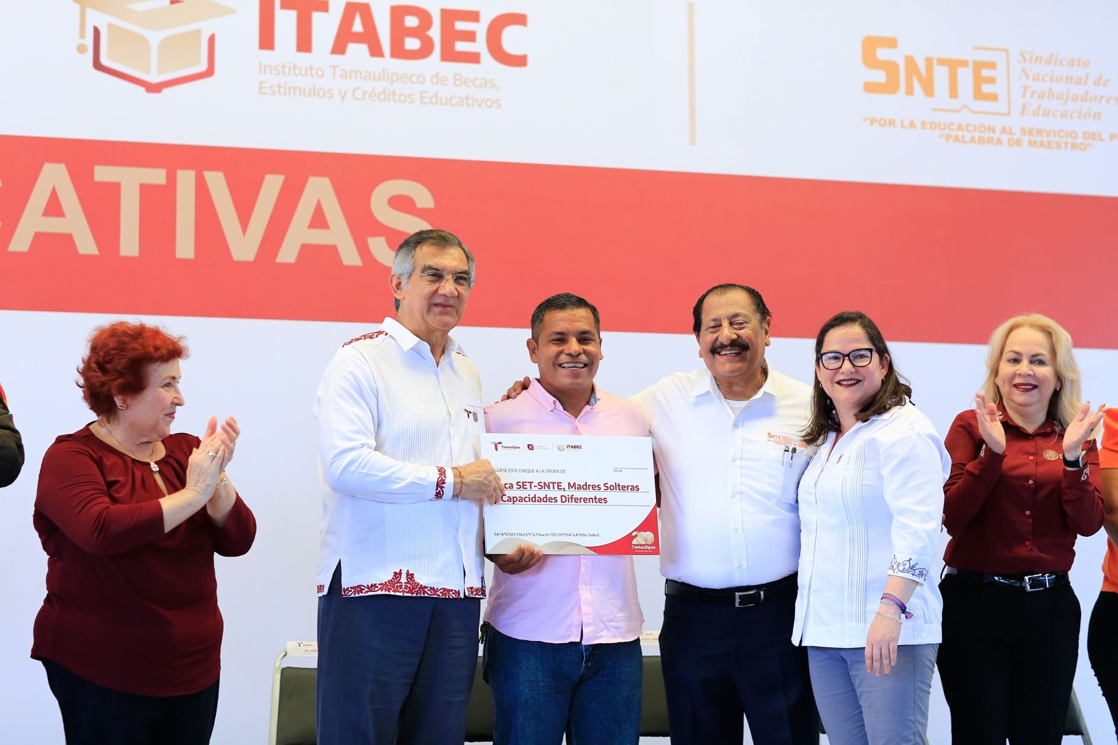 El Mante, Tamaulipas. – El gobernador de Tamaulipas, Américo Villarreal Anaya, hizo entrega de becas estatales comprendidas en seis programas que impulsan la educación de niñas, niños y adolescentes. Reiteró que desde su gobierno se trabaja para que todos tengan las mismas oportunidades de desarrollo.En un significativo evento realizado en la escuela primaria Miguel Hidalgo, de El Mante, ante estudiantes de primaria, secundaria, nivel medio superior y superior, quienes lo recibieron con gran entusiasmo, el mandatario tamaulipeco afirmó que continuarán estas becas y que en el próximo sexenio serán universales, tal y como lo ha ofrecido la presidenta electa, Claudia Sheinbaum. «Con mucho gusto comparto lo que ha estado expresando nuestra próxima presidenta de México: que las becas en educación van a ser universales. El niño y niña que quiera estudiar desde la educación inicial hasta la formación profesional tendrán un acompañamiento económico que les dé sustento para poder mantenerse y continuar con su educación», afirmó.Ante la presencia del secretario general de la Sección 30 del SNTE, Arnulfo Rodríguez Treviño, el gobernador también reconoció el trabajo de los docentes, acciones que, dijo, forman parte de las cuatro áreas principales de la nueva visión de educación, de una transformación que se está dando en el país.»Primero, en reconocer el trabajo de los docentes y que tengan justamente su seguridad laboral, sueldos dignos y decorosos y ambientes de trabajo adecuados para poder ejercer su profesión», señaló, para enseguida comprometerse a que Tamaulipas sea de los primeros estados en otorgar más incrementos salariales, una vez que se aprueben a nivel federal.Villarreal Anaya entregó de forma simbólica 12 becas a igual número de estudiantes, comprendidas en los programas: «Avanza por las niñas, los niños, adolescentes, y jóvenes de Tamaulipas» en escuelas públicas; «Futuro Tamaulipas, Jóvenes de Nivel Medio Superior»; «Esperanza de Tamaulipas»; «Para la Inclusión Social en Tamaulipas»; «Voluntad y Trabajo, por la Paz de Tamaulipas»; y «Becas SET-SNTE, Madres Solteras y Capacidades Diferentes». Asimismo, hizo entrega de vales por 19 aires acondicionados y 15 computadoras en beneficio de las y los alumnos de la primaria mantense.Por su parte, la secretaria de Educación, Lucía Aimé Castillo Pastor, señaló que en Tamaulipas se trabaja para brindar una educación de excelencia a la niñez y juventud de nuestro estado.»Nuestro compromiso es garantizarles una educación integral y de excelencia, y eso incluye que las oportunidades que tengan para desarrollarse sean equitativas», puntualizó.