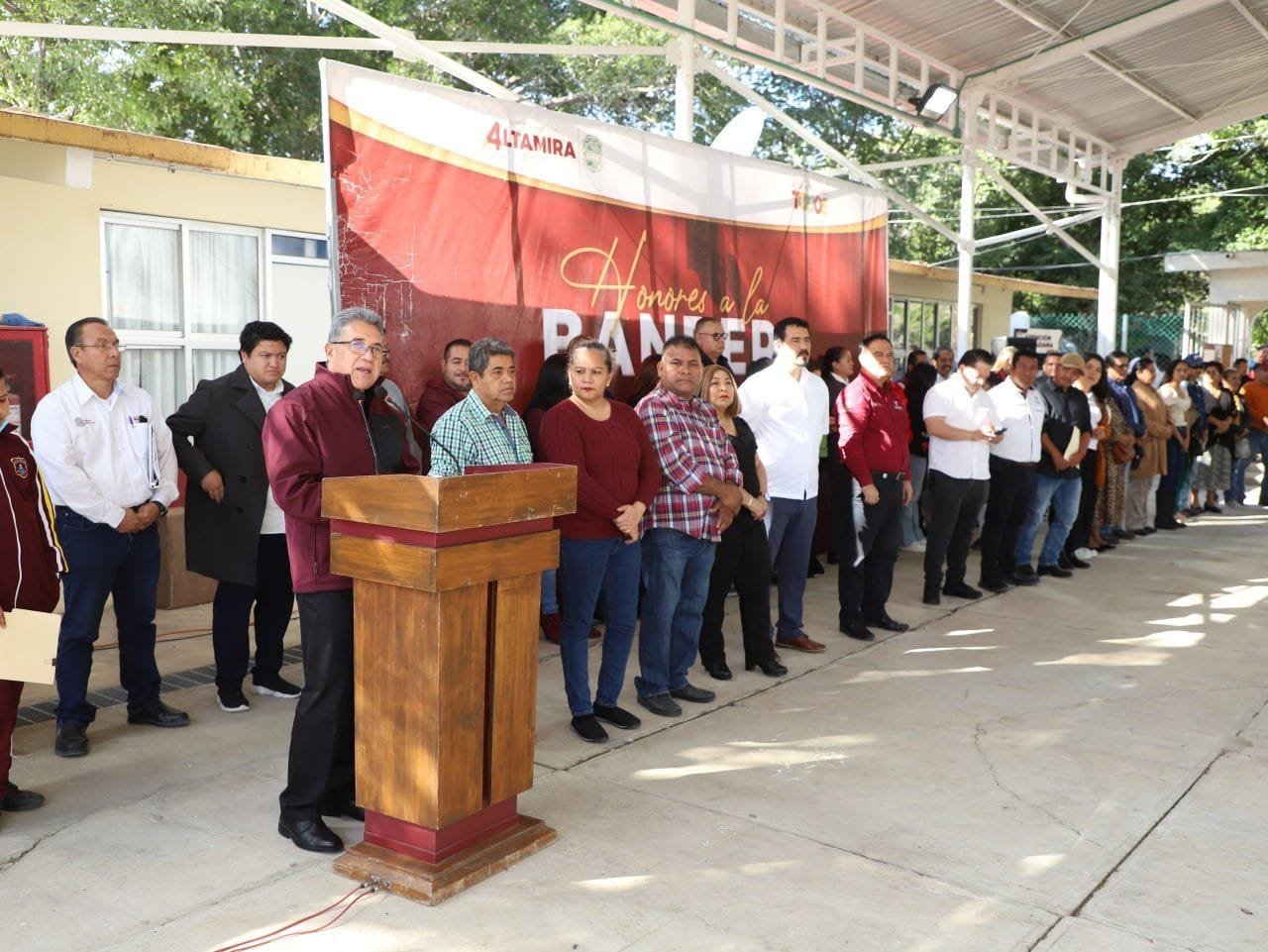 Altamira, Tamaulipas.-El presidente municipal de Altamira, Dr. Armando Martínez Manríquez, encabezó la inauguración de una nueva techumbre en la zona rural de la urbe; en esta ocasión en la Escuela Primaria “Josefa Ortiz de Domínguez”, situada en el Ejido El Fuerte.El evento dio inicio con los honores a la bandera, seguidos por las palabras de bienvenida del director de la institución, el Prof. Julián Torres Barbosa.
