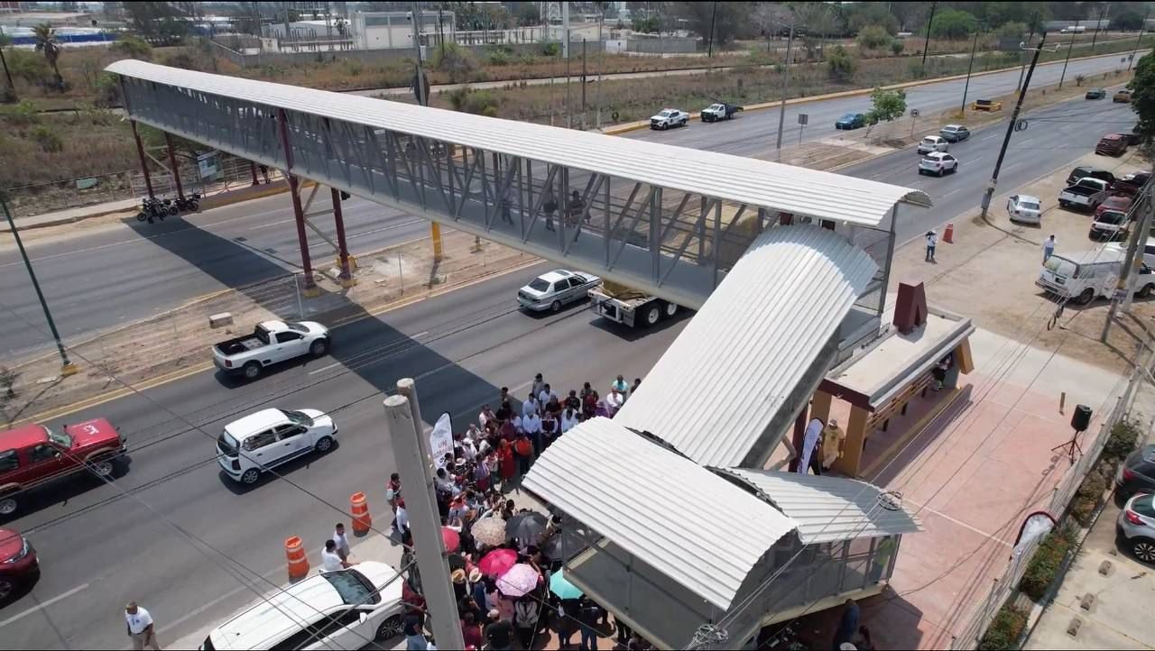 Altamira, Tamaulipas.-El presidente municipal de Altamira, Dr. Armando Martínez Manríquez, firme en su compromiso con el bienestar y la seguridad vial de los altamirenses, inauguró este día el Puente Peatonal localizado sobre la Avenida de la Industria, a la altura de la colonia Azteca en el Sector Montealto. En el acto protocolario de esta entrega de obra, informó el director de Obras Públicas del R. Ayuntamiento, Ing. Carlos Tenorio García que la inversión constó de más de 5 millones de pesos. Esta anhelada obra habrá de beneficiar a miles de personas que utilizan diariamente el transporte público, permitiéndoles hacerlo con mayor seguridad y comodidad.“El Puente Peatonal, que requirió una inversión de 5 millones 149 mil 722 pesos, es una obra de gran relevancia para el sector. Este nuevo puente está equipado con una serie de características que aseguran su funcionalidad y seguridad, incluyendo dos paraderos urbanos con alumbrado público, un techado de grueso calibre y también malla de seguridad, así como nueve reflectores”, amplió el titular de Obras Públicas. Durante la ceremonia de inauguración, el presidente municipal hizo énfasis en que hasta el último día de la presente administración, continuarán entregando obras que mejoren sustancialmente la calidad de vida de las familias y que fomenten un entorno urbano más seguro y accesible para todos. “Porque Altamira somos todos vamos a seguir entregando obras, amor con amor se paga”, concluyó el edil.