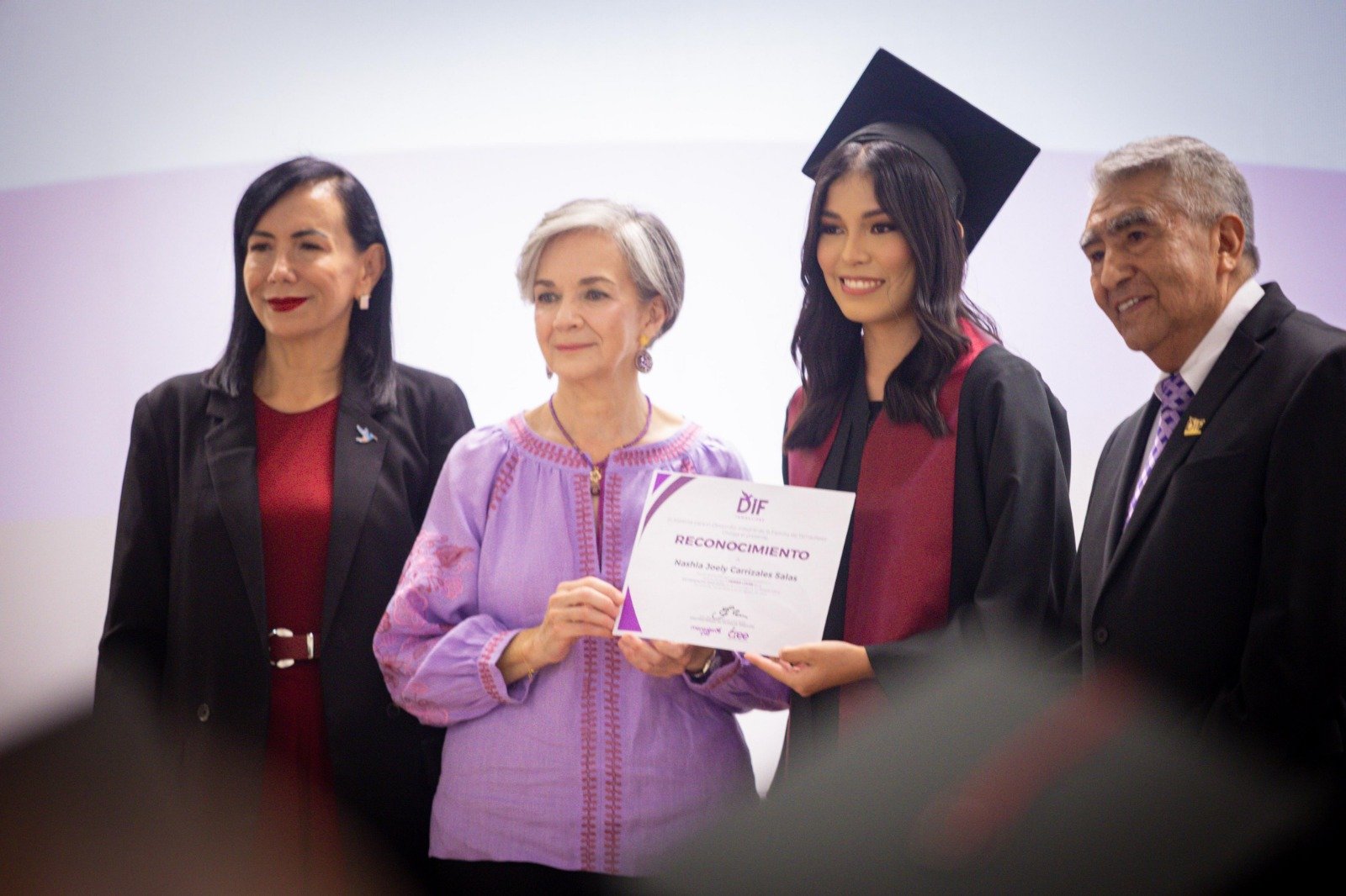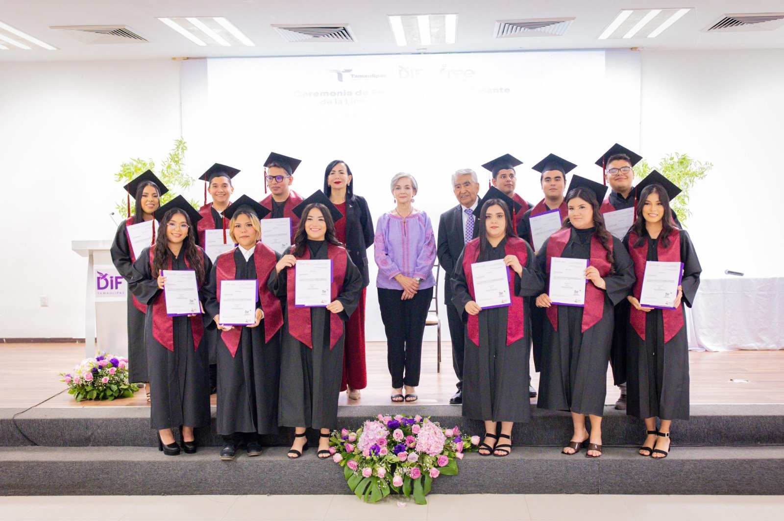 Agosto 23 de 2024.- Ciudad Victoria, Tamaulipas. Teniendo como marco el auditorio principal del DIF Tamaulipas, la presidenta de este organismo de asistencia social, la doctora María de Villarreal, hizo entrega de cartas de pasante a quienes forman parte de la generación número XXI de la Licenciatura en Terapia Física, la cual se imparte en las instalaciones del CREE de la capital del estado.
