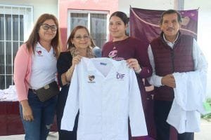 Además, en su incansable labor por fortalecer el sistema de salud local, mismo que ha innovado, pues desde el inicio de la administración municipal las consultas médicas no tienen costo alguno, Rossy Luque de Martínez hizo entrega de batas a los médicos de la zona rural en la Clínica DIF de Villa Cuauhtémoc.