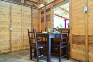 Esta nueva vivienda para la señora Olivia, ubicada en el Ejido José María Luis Mora (Margaritas), consiste en una casa de madera equipada con instalación eléctrica, comedor de madera, base de cama y colchón.