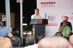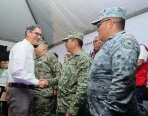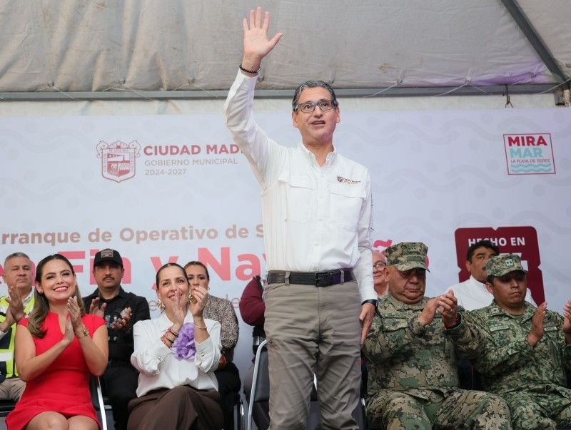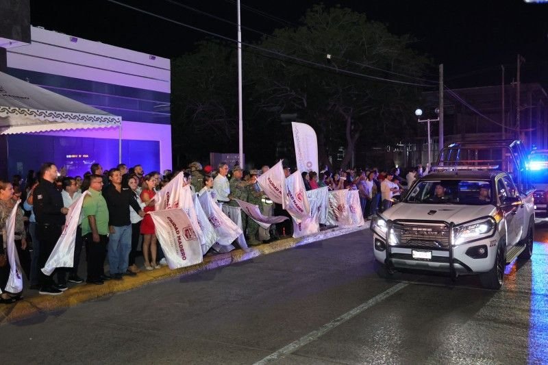 Para esto, se implementa el operativo Buen Fin y Navidad 2025, para dar seguridad y tranquilidad a las familias, que conozcan que las fuerzas policiales estarán muy cerca de cada familia y comercio. El presidente municipal Erasmo González hizo un reconocimiento al vicealmirante Miguel Rivas Hernández; al coronel de infantería José Velázquez