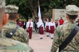 Antes estudiantes de la Escuela Secundaria Técnica No. 3 “Ing. Luis Hidalgo y Castro”, el munícipe manifestó que “conocer nuestra historia y nuestros símbolos patrios es fundamental para formar ciudadanos conscientes, participativos y comprometidos con su comunidad y su país”.