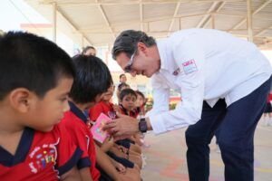 Durante una gira de trabajo por la Ampliación Emiliano Zapata, donde estuvo acompañado por su esposa Dunia Marón Acuña presidenta del sistema DIF, visitó a las y los alumnos Jardín de Niños Federal “Sergio Martínez Cavazos”, donde los recibió la directora del plantel, profesora Araceli Márquez Castillo, y el personal docente. Ahí las niñas y los niños, le plantearon la necesidad de contar con un huerto familiar, en busca de conocer más herramientas del cuidado de las plantas y el medio ambiente.