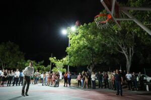 Además, se realizaron mejoras en el alumbrado público, transformando este espacio en un punto de encuentro para la práctica deportiva y la convivencia entre niñas, niños, jóvenes y adultos mayores, con el objetivo de fomentar un entorno saludable para la comunidad.
