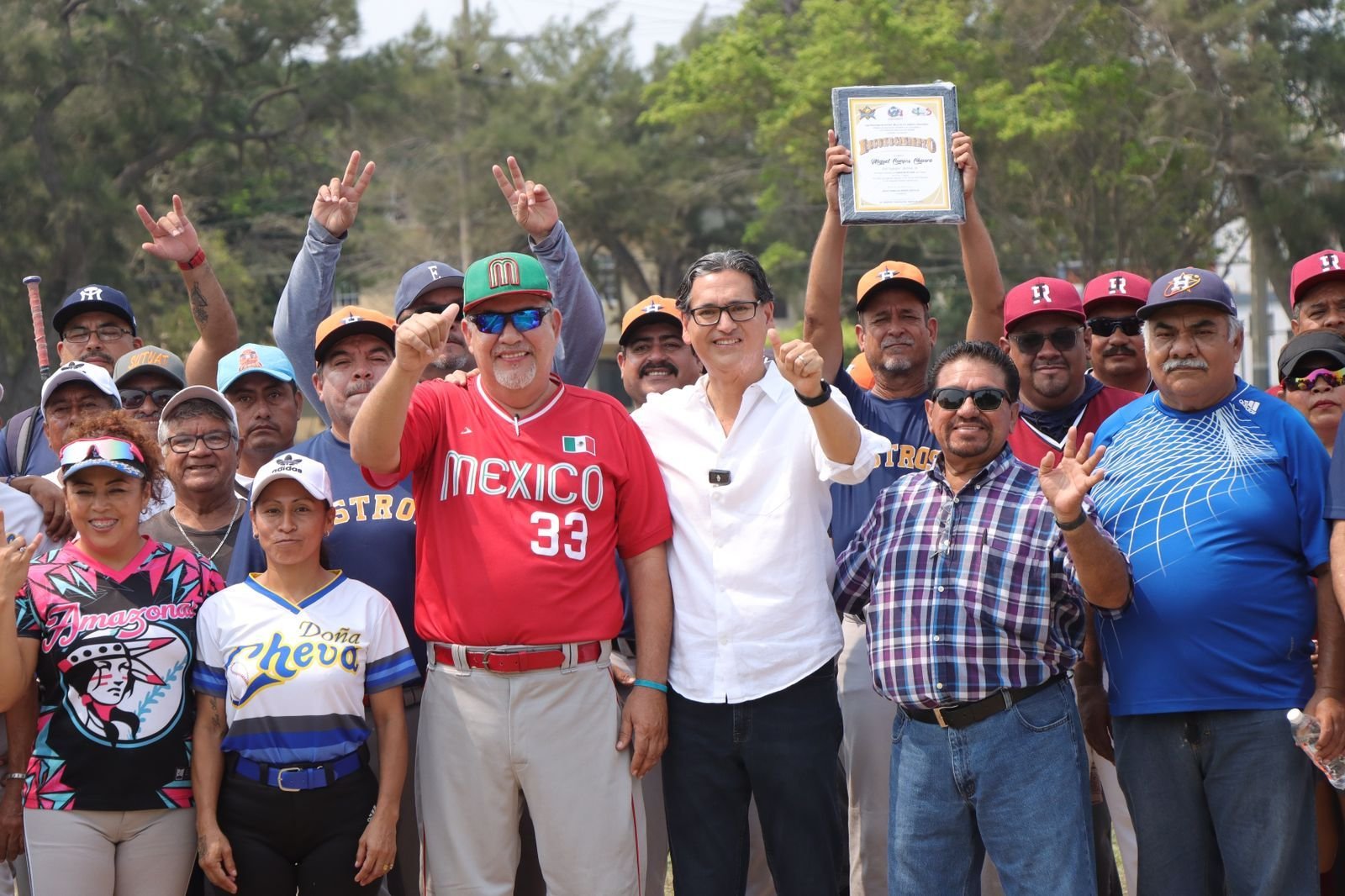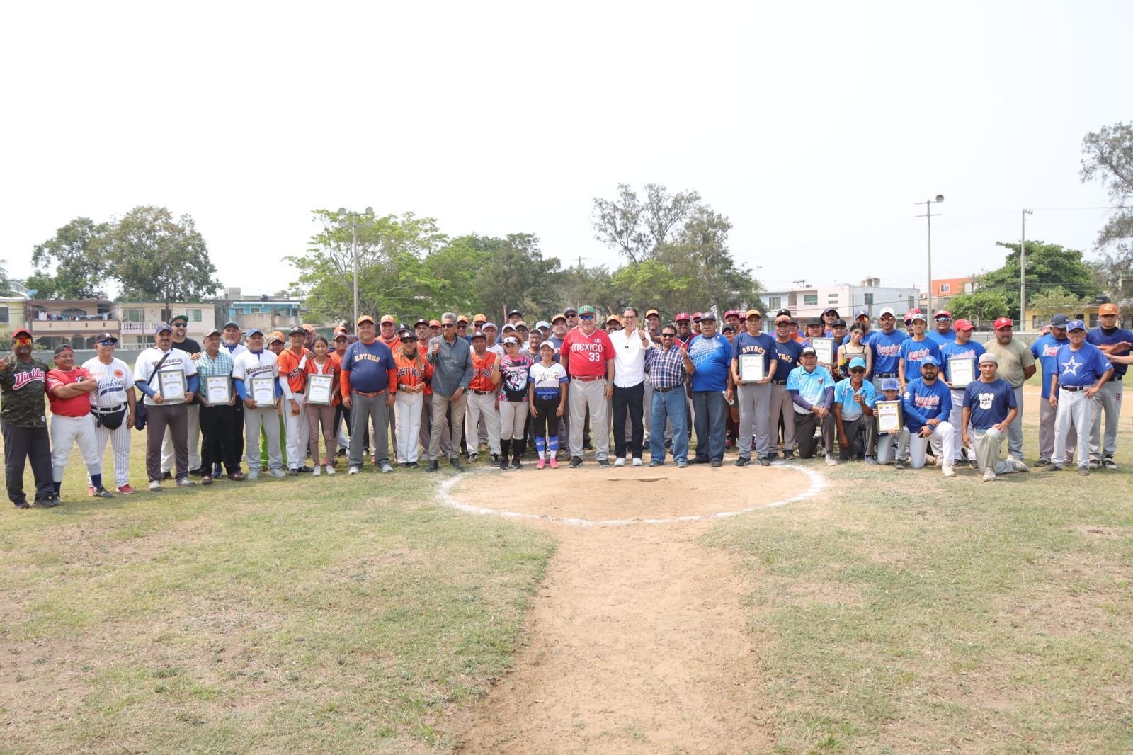 Una gran fiesta deportiva se vivió en la Unidad Deportiva “Benito Juárez”, al inaugurarse un campeonato más de la Liga Municipal de Softbol Mixta de Ciudad Madero, que lleva los nombres en honor de don Jesús San Agustín Alonso y don Víctor Pérez Álvarez (+); con la participación de 8 equipos, donde Erasmo González Robledo candidato a Presidente Municipal por la coalición MORENA-VERDE-PT, estuvo presente como invitado de honor. En su participación Erasmo González, reconoció que el softbol es un deporte que une a la convivencia familiar, donde se tendrán que hacer muchos trabajos de recuperación de estos espacios deportivos, para que nadie se quede sin practicar la disciplina de su preferencia. Ahí, los equipos participantes, le brindaron un reconocimiento al médico cirujano dentista Juan Ruiz Montelongo un homenaje a su aportación a este deporte.Tras la declaratoria inaugural que estuvo a cargo de César Guerrero Castilla, se procedió al lanzamiento de la primera bola que estuvo a cargo del candidato a Presidente Municipal Erasmo González Robledo, donde el bateador fue el homenajeado.Fue una fiesta deportiva, donde tras el desfile de los equipos “Cerveceros”, Facultad de Comercio, Astros “A”, Astros “B”, Tigres SUTUAT, Los Missmos de JR, Los Compadres y Representantes Médicos; así como el Cuerpo de ampagers, se procedió a la entrega de premios, en la categoría de primera fuerza; primer lugar: Equipo Astros A; Segundo lugar: equipo Compadres y tercer lugar: Equipo “Representantes Médicos”; reconocimientos individuales; Campeón bateador, Alfredo Sosa Animas del equipo Astros A, con 531 de porcentaje; campeón jonronero, Carlos Barrios Sánchez de “Representantes Médicos” con 3 de vuelta entera y campeón pitcher Miguel Campos Chavira, del equipo “Astros A”, 10 ganados y 1 perdido. En la categoría de Segunda Fuerza, el primer lugar para el equipo “Astros B”, el segundo lugar, para “Cerveceros”, tercer lugar, Facultad de Comercio, reconocimientos individuales para campeón bateador Alejandro Estrada Moreno; campeón jonronero Héctor Gaytán López y campeón pitcher Juan Huerta con 6 ganados un perdido.