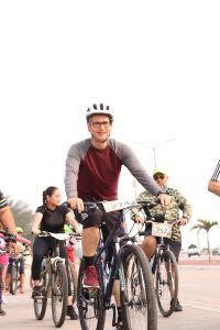 El candidato de la Coalición «Sigamos Haciendo Historia en Tamaulipas» llegó muy temprano al boulevard costero de playa Miramar para unirse a una rodada ciclista organizada por doña Teresa Cerón Medina del Club Rb Mx., con quienes transitaron desde la plaza Gobernadores hasta la escollera, luego retomar por la misma ciclovía hasta la glorieta Miramar.Durante un domingo enfocado en el deporte, Erasmo González Robledo, candidato a la Presidencia Municipal de MORENA y acompañado por Cynthia Jaime
