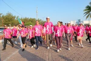 El Gobierno Municipal, en colaboración con el sistema para el Desarrollo Integral de la Familia y el IMSS Tamaulipas, organizó la Caminata Rosa «Unidos contra el cáncer de mama» con el objetivo de promover la concientización sobre la exploración y prevención de esta enfermedad. Esta actividad forma parte de los programas del Octubre Mes Rosa, donde el presidente municipal Erasmo González Robledo enfatizó que el compromiso en esta causa es responsabilidad de todas y todos. El presidente municipal, acompañado de su esposa Dunia Marón Acuña y del delegado del IMSS en Tamaulipas, Dr. José Luis Aranza Aguilar, inició una caminata desde la plaza Gobernadores. Durante su recorrido por el boulevard Costero «Roberto Cantoral», se unieron a la lucha contra el cáncer de mama, destacando la importancia de la concienciación y el apoyo a esta causa. Erasmo González destacó que el Ayuntamiento de la ciudad apoya firmemente estas iniciativas, en las que también participan hombres y mujeres de Altamira y Tampico. Esta colaboración refleja una gran responsabilidad en la promoción de programas permanentes destinados a la detección temprana de esta peligrosa enfermedad. Además, el sistema DIF implementa una serie de programas continuos enfocados en la atención a las mujeres. El Dr. Aranza Aguilar expresó su reconocimiento a todos los participantes por su compromiso con los programas destinados a quienes optan por realizarse una exploración o mamografía, fundamentales para la prevención oportuna del cáncer de mama. Esta iniciativa se lleva a cabo a nivel estatal y en diversas localidades del estado de Veracruz.