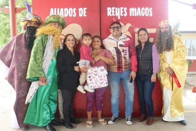 Altamira, Tamaulipas.-Continuando con las festividades del Día de Reyes, la presidenta del Sistema para el Desarrollo Integral de la Familia en Altamira, C.P. Rossy Luque de Martínez, asistió al ejido Mariano Matamoros para ser partícipe del programa “Aliados del Día de Reyes”, una actividad que recabó los deseos de niños y niñas de esta zona ejidal para materializarlos en regalos que fueron obsequiados por funcionarios del Gobierno Municipal y el propio DIF. Triciclos, muñecas, figuras de acción, autos a escala y un sinfín de regalos se entregaron a los pequeños de esta comunidad gracias al noble corazón de quienes integran el Cabildo de la ciudad, directores de las múltiples dependencias del Ayuntamiento, así como servidores públicos de primer nivel del organismo asistencial.“Es un placer estar aquí rodeada de tantos niños y niñas que sin duda son el corazón del Ejido Mariano Matamoros, porque son sus sonrisas, su inocencia y su ilusión lo que nos impulsó a estar aquí con ustedes para brindar una mañana muy especial”, expresó la presidenta del DIF. Destacó en el evento la estelar visita de los Reyes Magos: Melchor, Gaspar y Baltazar, quienes saludaron a las familias presentes y posaron para la fotografía del recuerdo cuando, uno a uno, los invitados especiales pasaron al frente a hacerle entrega de su obsequio a cada niño apadrinado en este día especial. “Mi deseo es que las niñas y los niños de Altamira vivan nuestras tradiciones, que las conozcan y las disfruten entre todos, como parte de nuestros compromisos de corazón”, recalcó Rossy Luque de Martínez.Concluyó este evento con una merienda especial para la concurrencia, misma que disfrutó también de un ameno show humorístico.