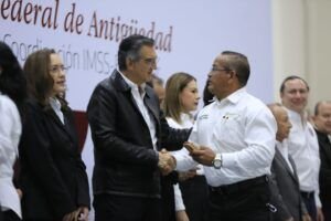 «Señor gobernador, doctor Américo Villarreal, gracias por su liderazgo y por su respaldo permanente a nuestro sistema de salud de Tamaulipas, esto nos anima mucho», indicó. Acompañado por Marggid Rodríguez Avendaño, coordinador de IMSS-Bienestar en Tamaulipas y dirigentes sindicales, el jefe del Ejecutivo entregó 37 premios de antigüedad, de un total de 1,400 a personal de salud, destacando por 60 años de servicio, Almarcelia Cárdenas Guardado, enfermera general titulada «B», del Distrito de Salud para el Bienestar I, en Ciudad Victoria. Por 55 años, se reconoció a Oscar Javier Álvarez Meléndez, médico especialista «C» del Hospital Civil de Victoria y a Alma Rosa Escobar Camacho, licenciada en