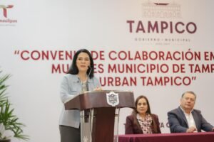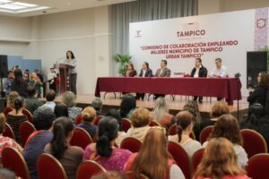 La Presidenta municipal Mónica Villarreal Anaya suscribió este día el convenio de colaboración con la empresa de transporte URBAN, mediante el cual se ofrecerán oportunidades laborales y de capacitación a las mujeres tampiqueñas que deseen incorporarse al corporativo, como operadoras de las unidades de transporte público. En el evento efectuado en la Casa de la Cultura, la alcaldesa señaló que este convenio es una gran oportunidad para todas las mujeres del municipio, para que accedan a mejores condiciones de trabajo y desarrollo personal, al integrarse a la plantilla laboral de Urban Tampico. “Hoy es un día muy importante, porque 160 tampiqueñas dijeron sí a esta oportunidad, a este nuevo camino en donde se están atreviendo a desempeñar una actividad que no es usualmente propia para las mujeres, pero que no tenemos ninguna limitación para poder llevar a cabo. Hoy iniciarán una capacitación gracias a las políticas socialmente responsables de Urban”. A la firma del convenio asistieron, el Secretario del Ayuntamiento, Carlos García Porres; el Gerente de Urban, Jaime Ramón Herrera Cortina; el Subsecretario de Transporte Público, José Armando Lara Valdés; el Delegado regional de Transporte Público en la zona conurbada, Mario Iván Aguirre Martínez; y la Sindica segunda, Laura Elena Ramírez Sánchez, así como regidores y funcionarios municipales.Mónica Villarreal dijo que este tipo de alianzas permiten a las mujeres alcanzar su independencia económica y con ello, evitar estar expuestas a la violencia doméstica. “Una manera en que podemos enfrentar la violencia de género, o la violencia de pareja hacia las mujeres, es otorgando este tipo de herramientas, para que puedan fortalecer su situación, alcanzar esa necesaria independencia económica y logren sacar adelante a sus familias”, indicó.La alcaldesa subrayó que uno de sus ejes prioritarios de su gobierno es la prosperidad compartida buscando generar condiciones para que las y los tampiqueños, tengan mayores oportunidades de desarrollo personal y alcancen una mejor calidad de vida, por ello, celebró el inicio de este importante programa de capacitación y empleo. Por su parte, el Gerente de Urban Tampico, Jaime Ramón Herrera Cortina agradeció a la alcaldesa porteña su compromiso de ampliar las oportunidades de crecimiento personal a las mujeres del municipio.“Para nosotros es muy importante demostrar con hechos, más que con palabras el compromiso que tenemos con la sociedad y las mujeres; la idea es sumar más mujeres al volante, brindándoles todas las prestaciones, capacitación y seguridad social. Gracias a la Presidenta Mónica Villarreal por permitirnos hacer de este convenio, una colaboración mutua que pronto dará grandes resultados”, expresó.