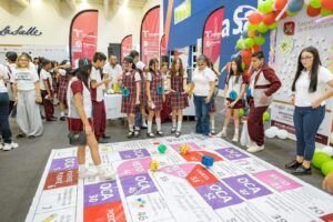 Durante la jornada, realizada en el gimnasio del campus norte de la Universidad La Salle, se logró reunir a más de mil personas entre autoridades, estudiantes, docentes y familias, en actividades culturales, pedagógicas y de concientización para fortalecer entornos escolares saludables, dentro de la campaña nacional “El fentanilo te mata: aléjate de las drogas, elige ser feliz”.