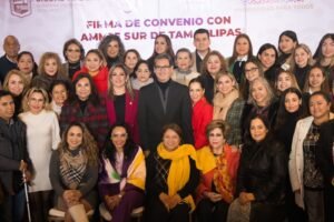 El presidente municipal Erasmo González Robledo, comprometido a impulsar el progreso económico de Ciudad Madero, formalizó un acuerdo de colaboración con la Asociación Mexicana de Mujeres Jefas de Empresa (AMMJE), liderada por Lorena Karely Rivera Ortiz, en el sur de Tamaulipas; este convenio tiene como objetivo fortalecer la relación empresarial con el Gobierno Municipal, fomentar el liderazgo femenino y apoyar el empoderamiento económico y social de las mujeres en nuestra comunidad.