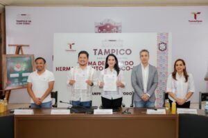 A fin de generar proyectos conjuntos que impulsen el desarrollo cultural, comercial y turístico entre los municipios de Tampico, Tamaulipas y Xilitla, San Luis Potosí, los alcaldes Mónica Villarreal Anaya; y Óscar Humberto Márquez Plascencia suscribieron, este viernes, el acuerdo de hermanamiento entre ambas ciudades. En el acto efectuado en el Palacio Municipal de Tampico, Mónica Villarreal destacó la relevancia del convenio para consolidar a la región huasteca como un atractivo destino turístico a nivel nacional e internacional.