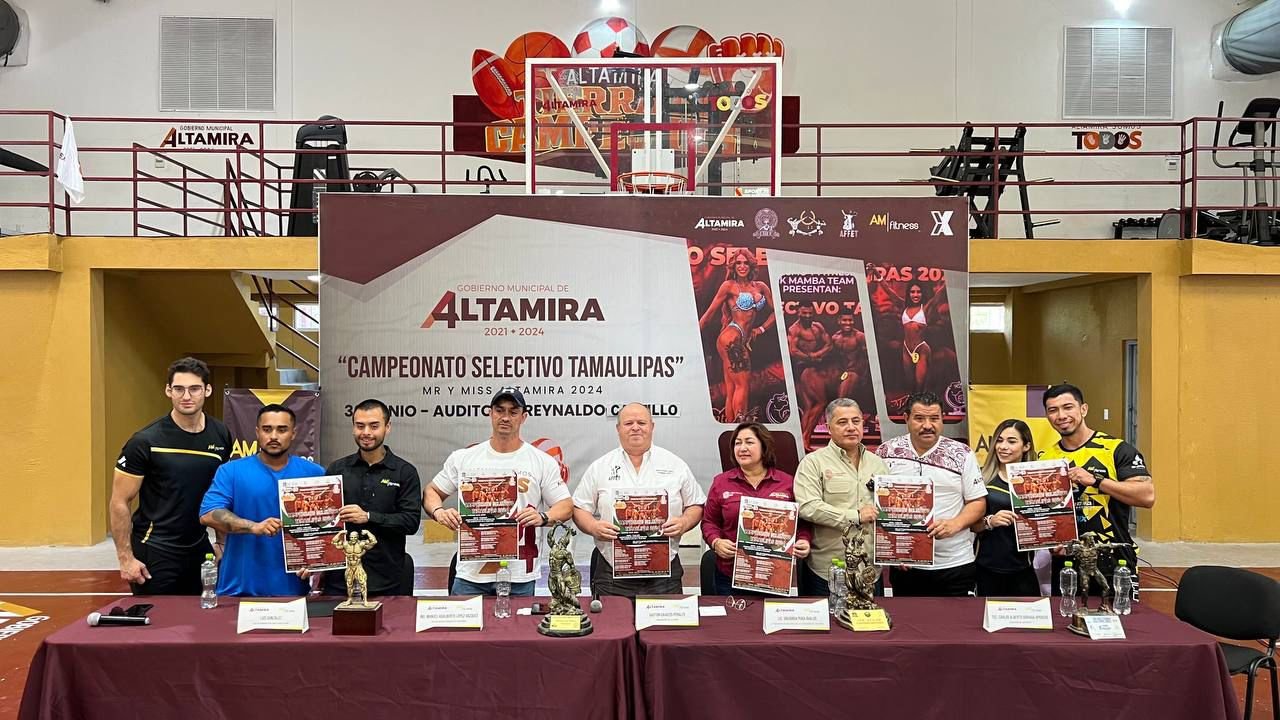 Altamira, Tamaulipas.-En el Auditorio “Reynaldo Castillo Portes” de Altamira fue llevada a cabo una rueda de prensa en donde se dio a conocer el próximo Campeonato Selectivo 2024 de Fisicoconstructivismo “Mr. y Miss. Altamira”, organizado por el Gobierno Municipal de esta ciudad y puerto, que dirige el alcalde Dr. Armando Martínez Manríquez, y la Asociación de Fisicoconstructivismo y Fitness de Tamaulipas.En dicho encuentro con medios de comunicación, el director de Deportes del R. Ayuntamiento, Tec. Carlos Arriaga Aparicio, informó que para el alcalde altamirense el respaldar este tipo de actividades es de suma importancia, pues se fomenta la integración, la salud y una mejor calidad de vida en la ciudadanía.Asimismo, el presidente de la asociación antes mencionada, Gastón Cavazos Perales, detalló que esta competencia habrá de desarrollarse el próximo 30 de Junio en este mismo auditorio, en la cual esperan entre 80 y 100 participantes provenientes de municipios como Ciudad Victoria, Nuevo Laredo, Reynosa, El Mante, la zona conurbada de Tampico y el Norte de Veracruz.Hizo mención que esta competencia es una antesala a la nacional a celebrarse en el Estado de Morelos, por lo que exhortó a los interesados a acercarse para formar parte de esta fiesta deportiva.Participaron en este encuentro la regidora presidente de la Comisión de Deportes en el Cabildo de Altamira, Gregoria Puga Ávalos; Manuel Alberto López, miembro del comité organizador, entre otras personalidades que integran la organización de esta competencia.