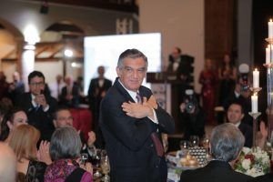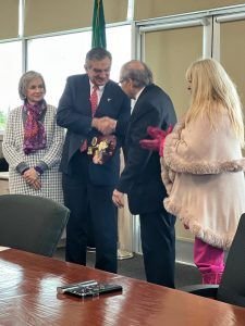 Laredo, Texas.- Si seguimos colaborando y trabajando con una gran visión humanista, vamos a lograr ser el ejemplo mundial de las oportunidades de crecimiento y desarrollo que se pueden lograr entre Estados Unidos y México y entre Tamaulipas y Texas, afirmó el gobernador Américo Villarreal Anaya. Al recibir de manos del alcalde de Laredo, Texas, Víctor Treviño, las «Llaves de la Ciudad» y acompañado por la presidenta del DIF Estatal, doctora María de Villarreal y de la alcaldesa de Nuevo Laredo, Carmen Lilia Canturosas, el gobernador de Tamaulipas llamó a seguir fortaleciendo la relación bilateral entre ambas comunidades. «Creo que, si seguimos trabajando en ese rumbo, con una gran visión humanista, desde aquí se puede mandar un gran ejemplo a nuestras naciones y nuestros estados de que ese espíritu y esa forma de trabajar y colaborar nos va a dar grandes oportunidades y grandes resultados y vamos a lograr ser el ejemplo mundial de las oportunidades de crecimiento y desarrollo entre nuestras dos naciones y nuestros dos estados», expresó.Tras agradecer la distinción y la invitación para participar en los festejos del natalicio del presidente George Washington, el mandatario tamaulipeco destacó que el primer presidente de los Estados Unidos también se caracterizó por su visión humanista, democrática y de respeto a los derechos humanos. «Nos sentimos muy complacidos cada vez que tenemos la oportunidad de reunirnos para ver por el beneficio de nuestras dos sociedades y el progreso que podemos tener», indicó.Por su parte, el alcalde de Laredo, Texas, Víctor Treviño afirmó que el reconocimiento a Américo Villarreal es por la colaboración, la amistad y los esfuerzos que ha demostrado desde el inicio de su administración para contribuir al fortalecimiento y la integración de esta región fronteriza. «Con la conexión y amistad que tenemos, podemos hacer vínculos, podemos hacer progreso y hacer que todo salga bien para las dos ciudades», mencionó.En su intervención, la alcaldesa de Nuevo Laredo, Carmen Lilia Canturosas Villarreal, destacó que como nunca antes, el gobernador Américo Villarreal, promueve la relación bilateral entre Nuevo Laredo y Laredo, Texas.“Tenemos como gobernador a una persona humanista quien se ha preocupado y ocupado por brindar bienestar a la comunidad, pero además ha realizado las gestiones necesarias para potencializar el comercio de la frontera más importante y dinámica de México y Estados Unidos”, indicó Canturosas. Durante este evento estuvieron presentes Rosa Márquez de Treviño, esposa del alcalde Víctor Treviño; Eduardo Garza, presidente de Grupo UNI- TRADE; el rector de la Universidad Autónoma de Tamaulipas, Dámaso Anaya Alvarado y autoridades de Laredo, Texas.
