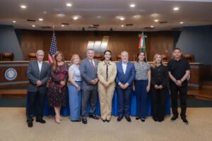 El Mayor de la ciudad texana, Javier Villalobos, acompañado de su esposa Annette Villalobos; resaltó el histórico momento para ambos municipios y aseguró que su administración contribuirá al fortalecimiento de esta relación para generar proyectos de desarrollo y beneficio común.