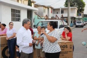 Posteriormente, se procedió con la reposición del concreto en la zona intervenida. “En cuanto a las presiones, cuando se originó el problema la presión era de 0.3, y actualmente se encuentra en 1.3, lo que permite que el agua llegue sin inconvenientes a las viviendas”, puntualizó. Asimismo, el funcionario señaló que una vez que el concreto colocado alcance su máxima resistencia, se estima que la vialidad afectada podrá ser liberada al tránsito a más tardar el próximo fin de semana. Durante esta misma jornada, el alcalde Armando Martínez entregó apoyos a familias que resultaron afectadas por un incendio registrado en un mesón federal el pasado mes de marzo. En total, se otorgaron cuatro lavadoras y un calentador de agua como parte del respaldo solidario del Gobierno Municipal hacia quienes más lo necesitan.