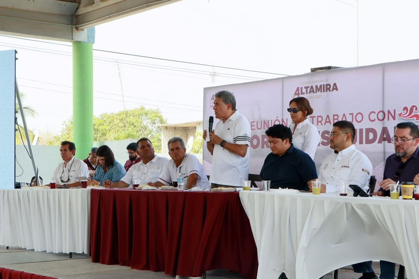 Reafirmando el compromiso de garantizar el suministro de agua en las zonas rurales, el gerente general de la Comisión Municipal de Agua Potable y Alcantarillado de Altamira, Dr. Gabriel Arcos Espinosa, participó en una reunión de trabajo desarrollada en Villa Cuauhtémoc con autoridades ejidales, misma que fue encabezada por el alcalde Dr. Armando Martínez Manríquez.