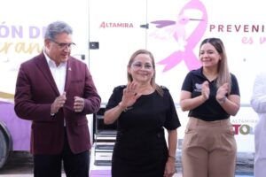 En el marco del Día Internacional de la Mujer, y en colaboración con la Jurisdicción Sanitaria Número 12, el Gobierno de Altamira y el Sistema DIF municipal, pusieron en marcha el Camión de la Esperanza, una unidad móvil que ofrecerá servicios gratuitos como el iBreast Exam, mastografías y exámenes de papanicolaou.La presidenta del Sistema DIF Altamira, Rossy Luque de Martínez, destacó la importancia de este programa. “Hoy damos inicio a una acción fundamental con el arranque del Camión de la Esperanza, nuestra unidad móvil especializada en la salud de la mujer. La salud no debe esperar y ninguna mujer debe postergar su bienestar. Durante todo el mes de marzo, este camión estará disponible en el primer cuadro de la ciudad, de nueve de la mañana a dos de la tarde, ofreciendo mamografías y Papanicolaou de manera gratuita”, explicó.Por su parte, el presidente municipal, Dr. Armando Martínez Manríquez, subrayó que este programa será una campaña permanente en el municipio. “Queremos que Altamira sea un ejemplo a nivel estatal y nacional, y que alcancemos la meta de tener una bandera blanca con cero casos de cáncer de mama”, señaló el alcalde. En el evento desarrollado en la explanada de la presidencia municipal también estuvieron presentes el jefe de la Jurisdicción Sanitaria Número 12, Dr. Carlos Arturo Juárez Del Ángel; la regidora del Ayuntamiento de Altamira, presidenta de la Comisión de Salud, Leticia Barrios Chavero; la directora general del DIF Altamira, Lic. Dunia Isabel Cornejo Belauzarán, e integrantes del cabildo de Altamira.El Camión de la Esperanza es una iniciativa del Gobierno de Altamira que refuerza el compromiso con la salud y el bienestar de las mujeres del municipio, brindando acceso a estudios preventivos sin costo alguno.
