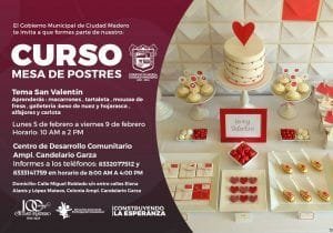 Como parte de las acciones encaminadas a fortalecer la economía familiar, el Gobierno de Ciudad Madero pone a disposición de la ciudadanía una amplia oferta de talleres de autoempleo, mismos que se imparten en el Centro de Desarrollo Comunitario Ampliación Candelario Garza, con el propósito de brindar las herramientas para el emprendimiento. En ese contexto, la directora de Participación Ciudadana, Araceli Saldierna Trujillo, comentó que próximamente iniciarán 3 nuevos talleres relacionados con cocina, panadería y mesa de postres, reiterando que los alumnos puedan adquirir conocimientos y habilidades para desempeñar algún oficio.Cabe mencionar que del 5 al 9 de febrero se realizará el curso “Mesa de Postres” con el tema San Valentín, en el que aprenderán a elaborar macarrones, tartaletas, mousse de fresa, galletería como besos de nuez y hojarasca, además de alfajores y carlota; el horario será de 10:00 a 14:00 horas.Asimismo, se llevará a cabo un taller de cocina de mar, el cual empezará el 13 de febrero en horario de 10:00 a 14:00 horas, en el que se prepararán platillos como: caldo de mariscos, jaiba a la Frank, empanadas de salpicón, 2 tipos de ceviche, camarones rellenos, entre otros.También, del 15 de febrero al 15 de marzo se impartirá el curso de panadería en horario de 10:00 a 14:00 horas, todos los jueves.Finalmente, Saldierna Trujillo dijo que los interesados pueden solicitar más información en el CDC Ampliación Candelario Garza, comunicándose a los teléfonos 833-314-17-59 y 833-207-75-12, o bien en calle Miguel Robledo s/n entre calles Elena Alanís y López Mateos.