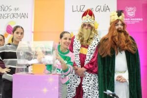 Ante la asistencia de más de 1,200 personas, el Sistema DIF Ciudad Madero llevó a cabo el gran festejo de Día de Reyes en el auditorio “Américo Villarreal Guerra”, un evento que llenó de alegría, sonrisas y momentos inolvidables a niñas, niños y familias maderenses. El evento estuvo encabezado por la Presidenta del Sistema DIF Ciudad Madero, Lic. Dunia Marón Acuña, quien, acompañada de sus hijas Ana Victoria y María Eliza, agradeció la respuesta de la ciudadanía que desde temprana hora se dio cita para ser parte de este festejo, el segundo que se realiza de manera consecutiva durante esta fecha tan significativa desde el inicio de su administración. Durante su mensaje, la Presidenta del DIF expresó su agradecimiento a las familias por la confianza depositada en la institución, destacando la importancia de la convivencia y la integración familiar como eje fundamental del trabajo social que se realiza. “Gracias por estar aquí, gracias por confiar en nosotros, la integración familiar es muy importante”, señaló. Asimismo, refrendó su compromiso de continuar trabajando con vocación y sensibilidad: “Vamos a seguir trabajando con mucho cariño”. El festejo incluyó show de payaso, animación y dinámicas recreativas que mantuvieron un ambiente festivo durante toda la jornada, además de la entrega de cientos de regalos entre los que destacaron bicicletas, triciclos, montables y muchos obsequios más. Como parte de la organización del evento, a cada niña y niño que ingresó al recinto se le entregó un box lunch, un juguete y un boleto para participar en la rifa de los premios principales, garantizando así una experiencia completa y llena de sorpresas para los asistentes. Organizado en sinergia con el Gobierno Municipal de Ciudad Madero, encabezado por el Presidente Municipal, C.P. Erasmo González Robledo, este festejo es muestra del compromiso del Organismo asistencial por seguir generando espacios de convivencia familiar y bienestar para la niñez, fortaleciendo los lazos comunitarios y llevando momentos de alegría a quienes más lo necesitan.