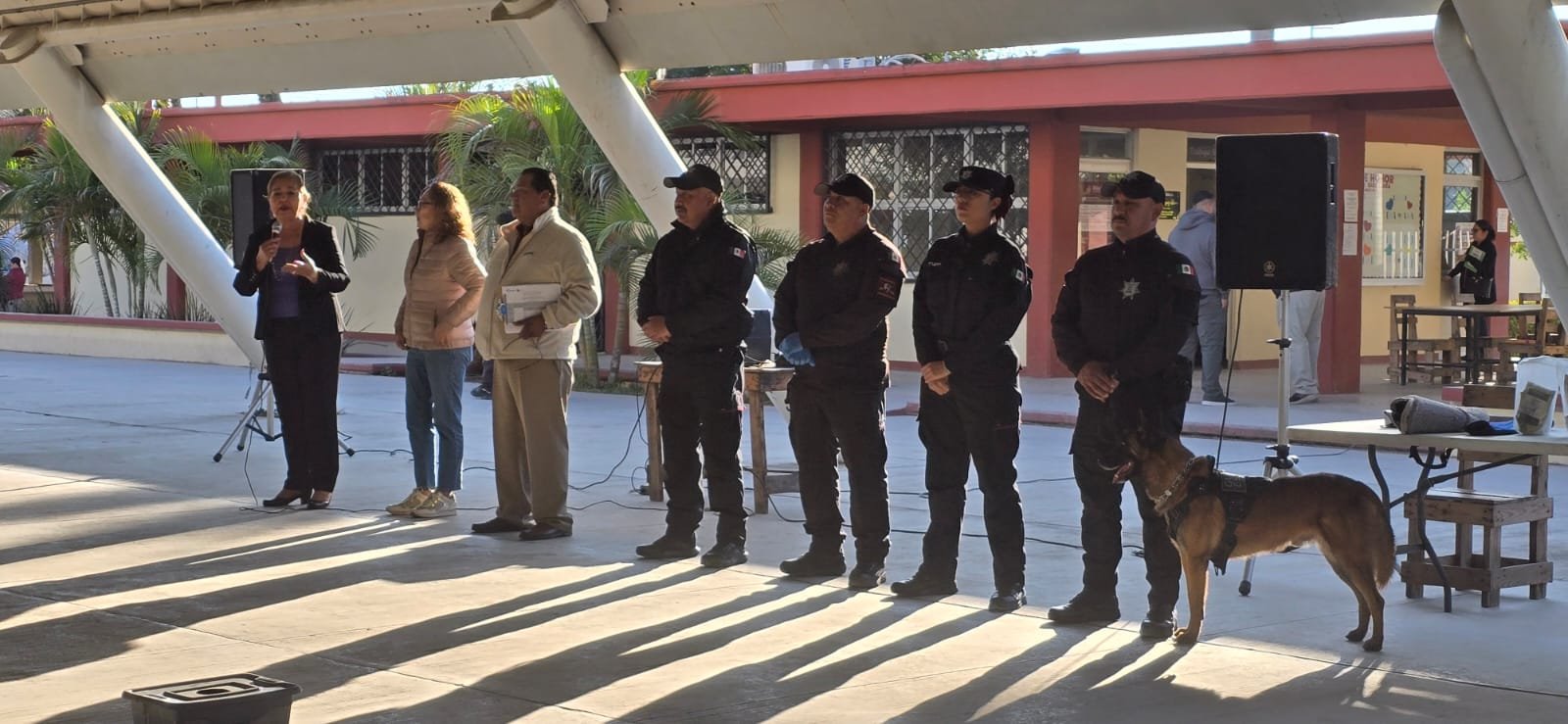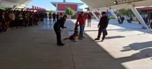 Durante la jornada se contó con la intervención del binomio canino “Max”, especializado en detección de narcóticos e intervención policial, como parte del programa “Para una vida saludable y seguridad escolar”. Las acciones incluyeron inspecciones preventivas mediante el uso de seudoaromas de narcóticos en cajas referenciales, así como ejercicios de obediencia, socialización y proximidad con el personal docente y el alumnado, con el objetivo de fortalecer la cultura de prevención y promover entornos escolares seguros.