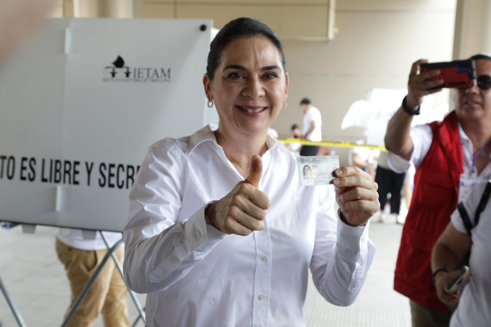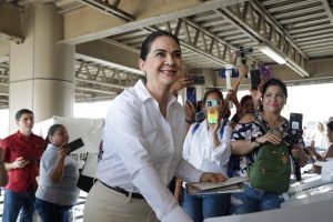 Tampico,Tam.- En punto de las 10:00 de la mañana la candidata de Morena a la alcaldía de Tampico, Mónica Villarreal Anaya, acudió a emitir su voto e invitó a la ciudadanía a que salgan a ejercer este derecho.Entrevistada por los medios de comunicación, la candidata de la 4T dijo que este ejercicio será histórico y sumamente importante para la sociedad porque se fortalece la democracia.»