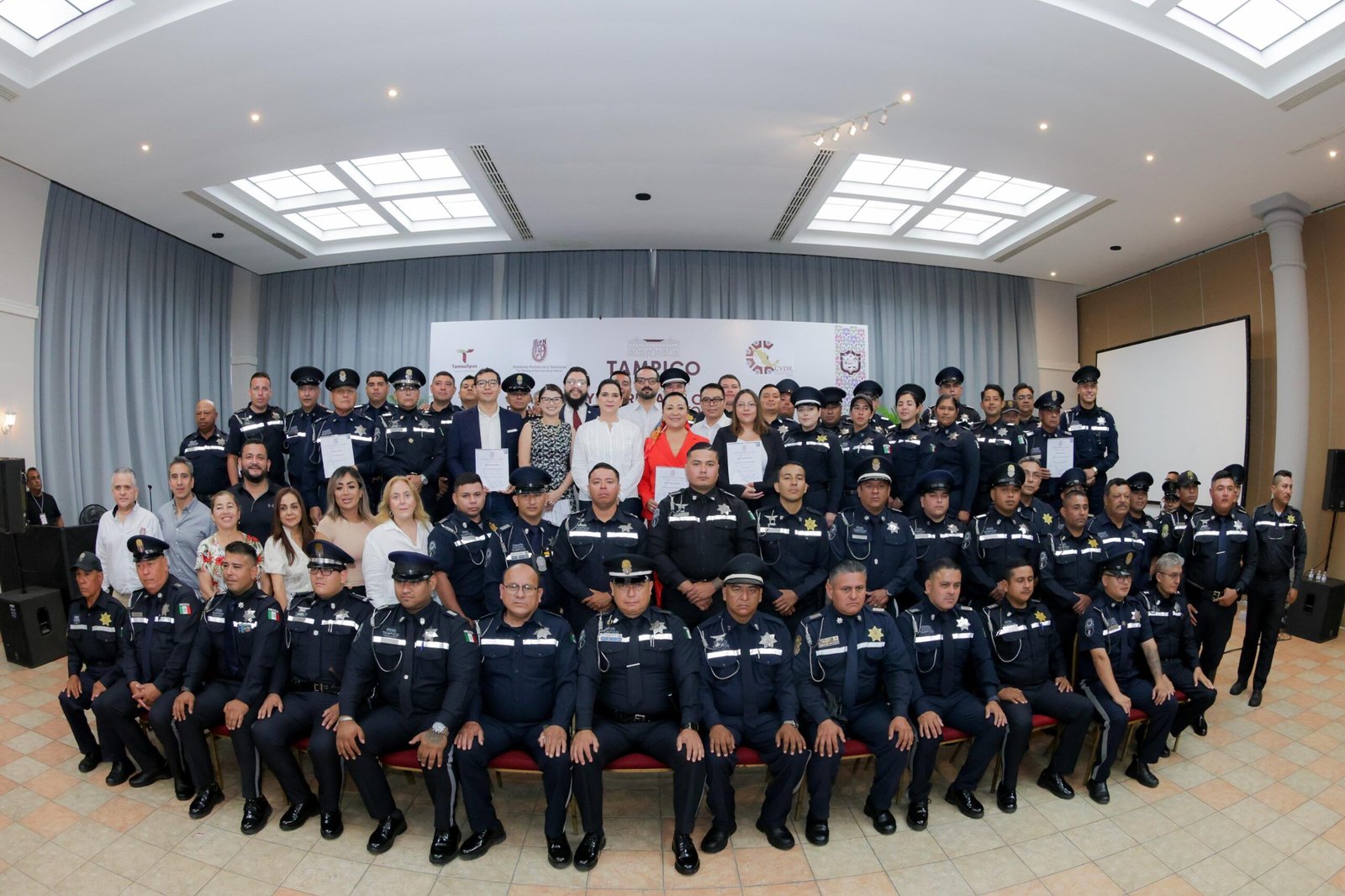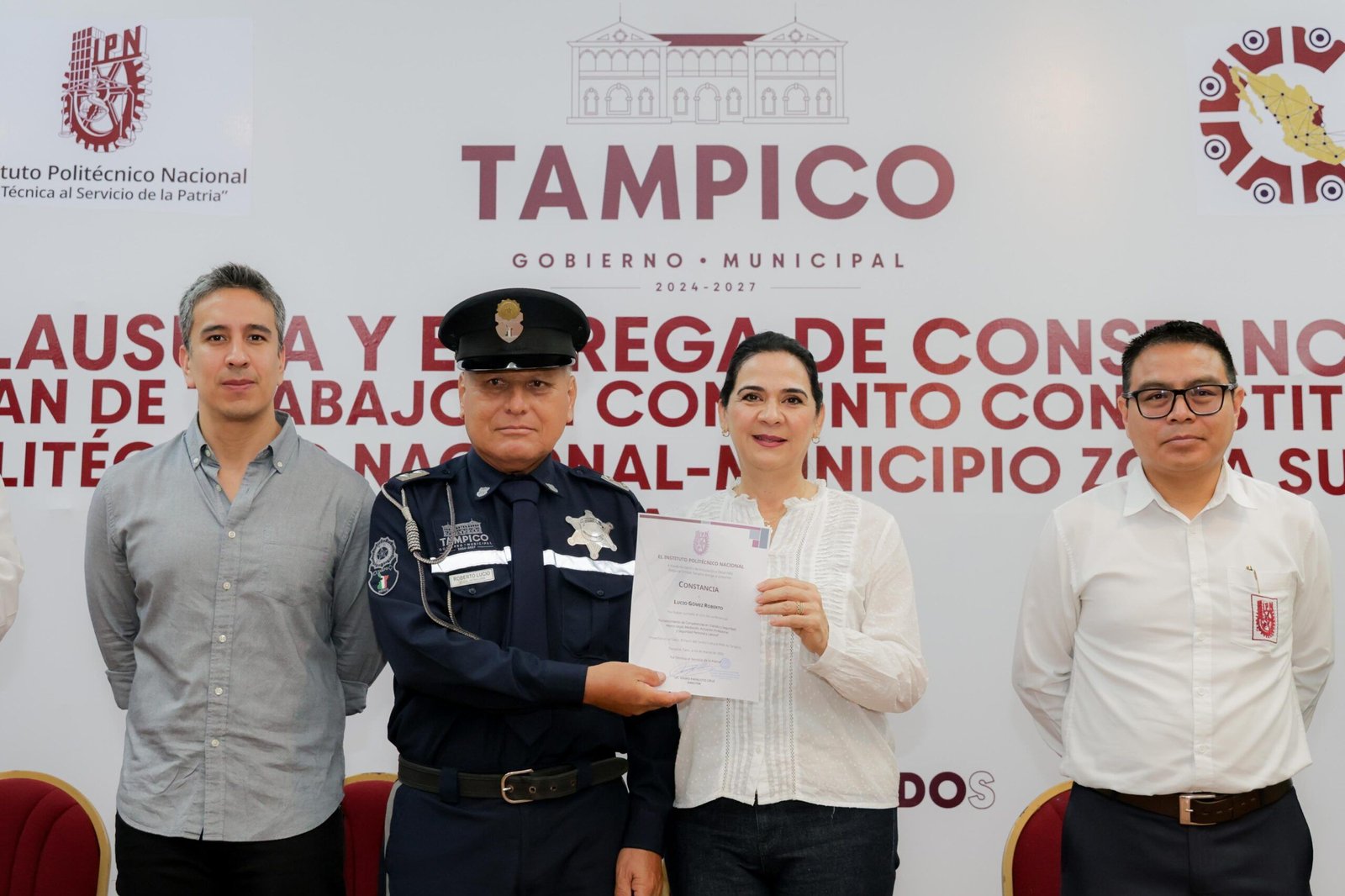 En un hecho sin precedentes a nivel nacional, la presidenta municipal Mónica Villarreal Anaya encabezó la clausura del primer programa de capacitación integral para elementos de Tránsito de la zona conurbada, desarrollado en coordinación con el Instituto Politécnico Nacional (IPN), que benefició a 160 oficiales de Tampico, Ciudad Madero y Altamira. El evento realizado en la Casa de la Cultura contó con la presencia del Director del Centro de Vinculación y Desarrollo Nacional del IPN, Isidro Papalotzi Cruz, quien destacó el carácter histórico de esta capacitación conjunta entre tres municipios. «Hoy materializamos nuestro lema ‘La técnica al servicio de la patria’ y sentamos un precedente nacional en formación policial», afirmó.La alcaldesa Villarreal Anaya enfatizó que este programa refleja el compromiso de su administración con un gobierno humano y cercano a la ciudadanía. «Estos conocimientos permitirán a nuestros elementos brindar un servicio más sensible y profesional, siguiendo el ejemplo de nuestro gobernador Américo Villarreal Anaya», expresó durante la ceremonia de entrega de constancias.El innovador programa de capacitación, diseñado específicamente para las necesidades de la región, tuvo como objetivo fortalecer las habilidades técnicas y operativas de los elementos viales, mejorando su interacción con la ciudadanía y visitantes. «Estamos transformando la forma de servir a la población, con honestidad y dignidad», subrayó la presidenta municipal.Al acto asistieron los secretarios generales de los tres ayuntamientos: Carlos García Portes, de Tampico, Héctor Marín Rodríguez, de Ciudad Madero y José Francisco Pérez Ramírez, de Altamira; demostrando la coordinación interinstitucional que caracteriza a esta administración.Este programa pionero se consolida como parte de la visión de la presidenta Mónica Villarreal para profesionalizar los servicios públicos y mejorar la calidad de vida de los habitantes de la zona conurbada, posicionando a Tampico como referente en innovación en seguridad vial a nivel nacional.