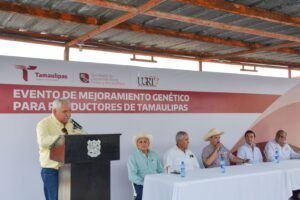 Reynosa, Tamaulipas.- Con el objetivo de continuar fortaleciendo la genética del ganado en Tamaulipas, la Secretaría de Desarrollo Rural, Pesca y Acuacultura llevó a cabo el evento “Mejoramiento Genético 2025” en el municipio de Reynosa. Durante la jornada se ofrecieron 24 sementales bovinos de las razas beefmaster, charolais y charbray, con un subsidio del 50 por ciento.El evento se llevó a cabo en la Estación Cuarentenaria de Reynosa, encabezado por el titular de la dependencia estatal, Antonio Varela Flores, quien destacó que Tamaulipas es una tierra noble con uno de los sectores ganaderos más importantes del país, no obstante, enfrenta retos como la sequía y enfermedades, por lo que el Programa de Mejoramiento Genético se consolida como una herramienta clave para potenciar su productividad.«El Gobierno de la Transformación, encabezado por Américo Villarreal Anaya, impulsa políticas públicas que subsidian el acceso a tecnologías genéticas, apuestan por la capacitación continua, invierten en sanidad y establecen alianzas con los ganaderos organizados, como la Unión Ganadera Regional de Tamaulipas y las asociaciones locales», destacó.Asimismo, el secretario de Desarrollo Rural, Pesca y Acuacultura manifestó que los productores que se beneficiaron mediante el Programa de Apoyo al Desarrollo Productivo y Económico, son de los municipios de Camargo, Miguel Alemán, Reynosa, Matamoros y Díaz Ordaz.Con lo anterior, dijo, se busca que los ganaderos mantengan y mejoren su genética, con el fin de seguir siendo punta de lanza y referente en la producción de calidad en Tamaulipas.El evento contó con la asistencia de José Guerrero Gamboa, presidente de la Unión Ganadera Regional de Tamaulipas; Cuauhtémoc Amaya García; subsecretario de Desarrollo Pecuario y Forestal; José Heriberto Cantú López; presidente de la Ganadera Local del municipio de Reynosa; Alfonso Rene Longoria García, tesorero de la Ganadera Local; Ovidio Gutiérrez Garza, secretario de la Ganadera Local; Mauricio Treviño, secretario de Desarrollo Económico y del Empleo; Tirzo Zumaya Turrubiates; director de Fomento Pecuario, además de productores pecuarios.