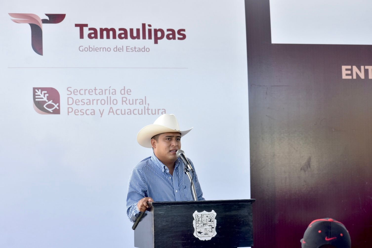 El evento estuvo encabezado por Jesús Pérez en representación de la presidenta municipal de San Carlos; Gaudisela Ramírez Zavala, presidenta electa; Julio César Becerra Vázquez, director de Desarrollo Rural del municipio; José Luis Chávez, tesorero municipal, además de las y los productores beneficiados.