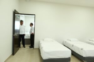Al referirse al mejoramiento de la infraestructura hospitalaria, puso como ejemplo la conclusión del Hospital General IMSS-Bienestar de Matamoros «Dr. Alfredo Pumarejo», con un costo de mil 64 millones de pesos, que ahora cuenta también con un albergue y espacio para residentes, que contribuirá a la formación de personal médico.