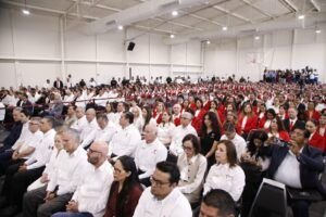 “Hace más de 30 años, un gobernador de voluntad y trabajo, el ingeniero Américo Villarreal Guerra, entregó en este mismo lugar una techumbre que por años fue refugio y punto de encuentro de la comunidad normalista, y hoy aquel legado, que se convirtió en un símbolo de confianza en el futuro, es honrado y prolongado por nuestro gobernador Américo Villarreal Anaya”, expresó. Al dar la bienvenida, la maestra Albertina Guadalupe Guajardo Villela, directora del plantel, indicó que este gimnasio significa salud y bienestar a través del deporte, y permitirá fortalecer la excelencia académica al contar con un recinto digno para clases, conferencias, talleres y actividades culturales.