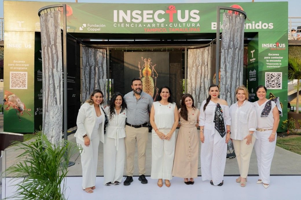 La Presidenta Municipal de Tampico Mónica Villarreal Anaya, inauguró la exposición «Insectus: Ciencia. Arte y Cultura», un proyecto coordinado con la Fundación Coppel y Clúster Kubál, que ofrece al público una amplia variedad de actividades y atractivos para el aprendizaje y la recreación familiar.Acompañada de Miriam Gastélum Aispuro, Gerente de Espacios Públicos y Cultura de Fundación Coppel, la Presidenta del Cluster Kubal, Pilar Garza González; y del Secretario de Turismo del Estado, Benjamín Hernández Galindo, la alcaldesa porteña señaló que esta monumental exposición urbana estará instalada en el Jardín de las Artes del Espacio Cultural Metropolitano (METRO); la cual está compuesta por 37 fotografías en gran formato del artista visual Levon Biss y muestra la colección de insectos del Museo de Historia Natural de la Universidad Oxford, recolectados por los exploradores Charles Darwin y Alfred Russel Wallace.»Estamos muy contentos porque podremos disfrutar en nuestra ciudad de esta maravillosa exposición que muestra el trabajo increíble del artista Levon Biss. Es una opción más de ciencia, arte y cultura que podrán gozar desde los más pequeñitos del hogar hasta los adultos, por lo que es una oportunidad para compartir en familia», expresó.Insectus estará disponible del 25 de mayo al 22 de junio en el Jardín de las Artes del METRO, donde los visitantes podrán participar en distintas actividades como talleres para niños, conferencias, un mercado emprendedor, recorridos guiados por la exposición, presentaciones artísticas e infantiles, cine, área de picnic, así como itinerarios especiales para escuelas y grupos.La presidenta municipal destacó que esta actividad, además de ser un encuentro cultural, es una apuesta por el fortalecimiento del tejido social, brindando a la población la valiosa oportunidad de disfrutar en familia de actividades que fusionan ciencia, arte y tradición.«El deporte, el arte y la cultura sabemos que son constructores de paz, y nuestro compromiso es crear espacios donde las familias puedan tener momentos de esparcimiento, y que además conozcan y disfruten del arte. Cada estado ha impreso en la exposición su identidad, y en esta ocasión, en Tampico, elegimos «La Catarina’ porque son mensajeras de alegría, así como nosotros, al ser un puerto que transmite alegría».Mónica Villarreal subrayó que Insectus será una excelente oportunidad para promocionar la ciudad en los ámbitos turístico, científico y cultural, pero principalmente brindará a las familias de Tampico, la zona conurbada y la región Huasteca un espacio para conocer el fascinante mundo de los insectos mediante muestras, pláticas, colecciones y una espectacular serie de fotografías en gran formato que muestran la amplia diversidad del mundo animal.Por su parte, Miriam Gastélum Aispuro, de Fundación Coppel, mencionó que:»En Fundación Coppel concebimos que la cultura y la ciencia tienen el poder de transformar realidades e Insectus es una prueba de ello, pues a partir del reencuentro con los insectos, aprendemos a verlos de otra manera, sin temor, con respeto y admiración. Esta muestra crea oportunidades para el encuentro, el aprendizaje colectivo y la construcción de una sociedad más consciente y comprometida con la conservación de nuestro entorno”.La exposición Insectus, una muestra de arte y cultura sobre insectos, se ha presentado en varios lugares, incluyendo Ciudad de México, Nuevo León, Sinaloa, Tabasco, Durango y Sonora, así como en ciudades internacionales como Nueva York, Paris y Berlín.