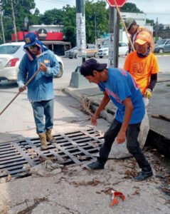 Atendiendo las instrucciones de la Presidenta municipal, Mónica Zacil Villarreal Anaya, cuadrillas de trabajadores de la Secretaría de Servicios Públicos intensifican las labores de limpieza y desazolve de la red hidráulica del municipio, principalmente en las zonas susceptibles a sufrir inundaciones.