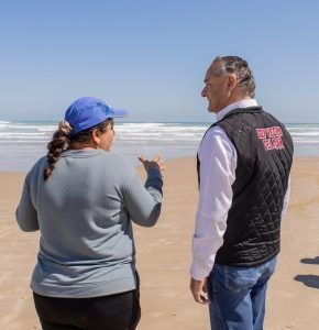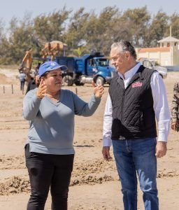 En ese contexto, el Presidente Municipal acompañado por su equipo de colaboradores, realizó una supervisión de dichos trabajos que además son autorizados por la Semarnat para proceder al reacomodo de arena, cumpliendo así, con los requisitos que marca también dicha autoridad federal.