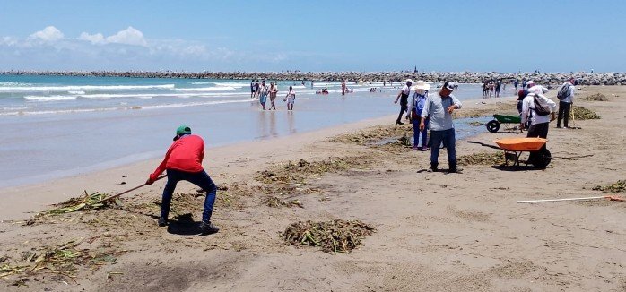 Ante la llegada de lirio acuático y palizada arrastrados por el río Pánuco después de las intensas lluvias, personal de diferentes dependencias municipales y estatales, así como voluntarios intensificaron los trabajos de limpieza en los 5 kilómetros del área recreativa de playa Miramar. La directora de Turismo, Lorena Yolanda González López, informó que desde el sábado pasado se activó el Plan de Retiro de Lirio y Palizada en Playa Miramar, con la participación de las direcciones municipales de Playa y Servicios Públicos, además de la Secretaría de Turismo del Estado de Tamaulipas. Explicó que para estas acciones se cuenta con maquinaria pesada, cuadrillas de trabajadores y más de 30 ciudadanos voluntarios que se han sumado al retiro del lirio acuático en el máximo paseo turístico.Cabe hacer mención que también se contó con la participación de personal de hoteles, palaperos y vendedores ambulantes, a fin de conservar en buenas condiciones este atractivo natural. “A pesar de todos los esfuerzos sigue llegando lirio, que es arrastrado por el río Pánuco, lo que significa que estos trabajos de retiro de esa vegetación continuarán por varias semanas, hasta lograr una limpieza total”, puntualizó la Directora de Turismo.