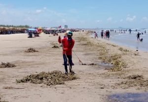 INTENSIFICAN TRABAJOS DE RETIRO DE LIRIO Y PALIZADA EN PLAYA MIRAMAR, TRAS LAS INTENSAS LLUVIAS