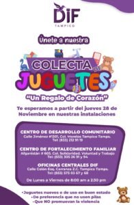 INVITA DIF TAMPICO A COLECTA DE JUGUETES «UN REGALO DE CORAZÓN»