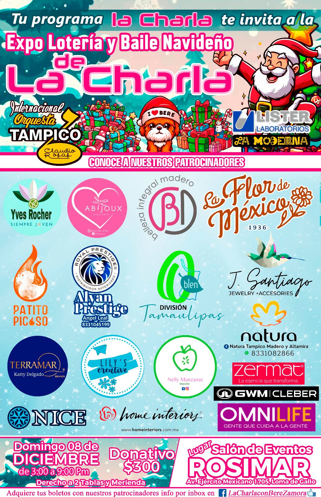 La Charla invita a la expo lotería y Baile Navideño este domingo 8 de diciembre a partir de las 16:00 horas en el salón de eventos Rosimar ubicado en Avenida Ejército Mexicano. El objetivo de esta actividad es promover la participación de emprendedores locales, quienes estarán reunidos en un sólo recinto para exponer una variedad de productos y servicios a la comunidad. «Es un ganar, ganar» dijo Berenice Zamora directora del programa La Charla ya que además de pasar un rato agradable jugando la tradicional lotería, participan en la rifa de regalos, conviven, y terminan disfrutando de un grandioso baile con la internacional orquesta Tampico. Durante la rueda de prensa que tuvo lugar en la panadería La Flor de México señaló que el donativo es de 300 pesos con derecho a dos tablas para participar en la lotería, además de una merienda y por supuesto terminar disfrutando a la internacional orquesta Tampico.