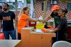 La humildad y sencillez de la candidata quedó de manifiesto, al saludar de mano a cada uno de los oferentes de ese mercado sobre ruedas a quienes externó la importancia de implementar medidas de limpieza al termino de sus actividades y mantener una cordialidad entre los residentes del sector, comprometiéndose a enviar brigadas de aseo una vez que concluyan sus actividades, para que las calles donde se instala el rodante queden de nueva cuenta aseadas.