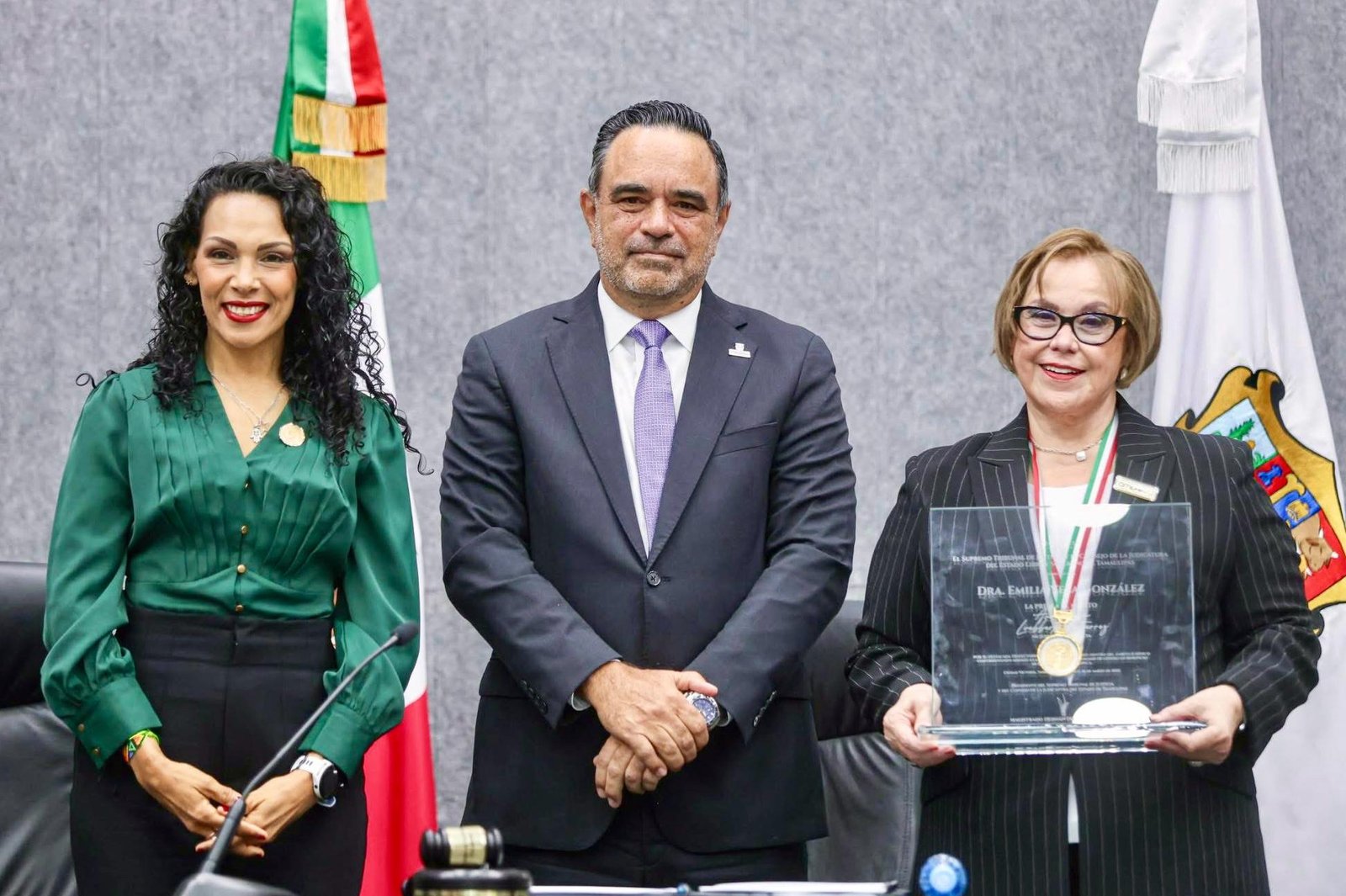 La presea fue otorgada a la Dra. Emilia Vela González, quien hizo historia al convertirse en la primera mujer en acceder a una magistratura en el ámbito judicial de Tamaulipas. Su trabajo y dedicación en el sector jurídico han sido fundamentales para promover la equidad y la justicia.