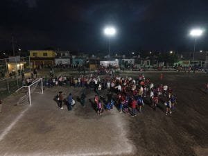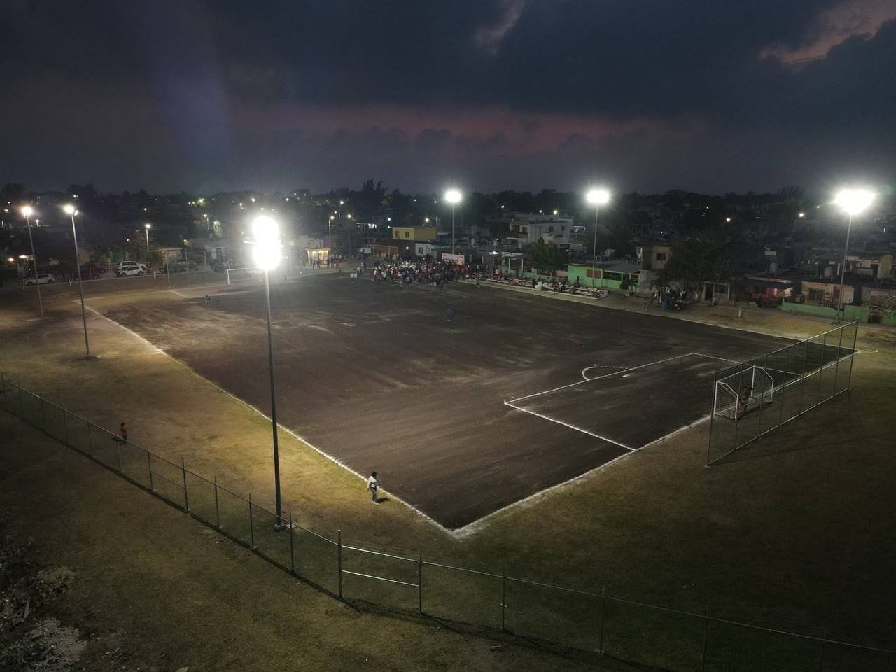 Fue a la cuenta de cuatro cuando el alcalde, su esposa, así como vecinos asistentes encendieron las luminarias de este campo transformado, en el que también habrán de incluir pasto natural, una trotapista, vestidores, juegos infantiles y aparatos de ejercicio al aire libre.